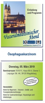 wir laden Sie erneut ganz herzlich zu unserem Viszeralmedizinischen Abend ein. Diesmal werden wir uns um die interdisziplinäre Therapie des Ösophaguskarzinoms kümmern und hier, im Dialog mit Ihnen, aktuelle Verfahrensweisen in Diagnostik und Behandlung diskutieren.